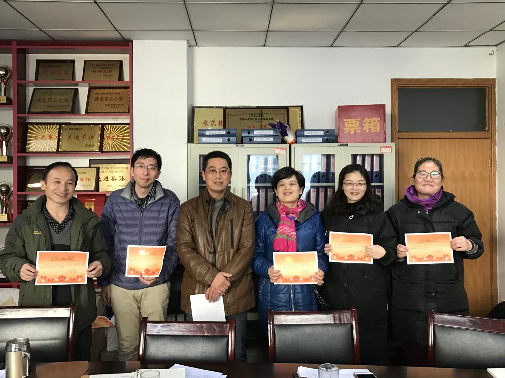 会议开始,学院教学副院长孙晓林、科研副院长高敏、副书记田景丽三位领导,分别客观全面的总结了过去一年各归口工作的开展情况,并对下年度的工作进行了安排布置,提出了明确要求和殷切希望。随后,学院党总支书记牛建绥对必赢官网第一届教工趣味运动会做了总结讲话,并宣读了运动会比赛结果。学院院长李光宣读了《关于表彰2016年度教学标兵、科研标兵、管理服务标兵的决定》,分别表彰了在2016年度积极承担教学任务,教学效果优秀;科研成绩突出;在管理服务岗位业绩突出的教师。这时,授奖人员成为全场的关注焦点,他们陆续登上光荣的领奖台,从领导手中接过荣誉证书。他们为学院教学、科研、管理服务工作,为学院的稳步发展做出了积极的贡献,付出了勤劳的汗水,成为我们大家学习的楷模。学院全体教师用热烈的掌声向获奖教师表示了祝贺。学院领导与受表彰的先进个人合影留念。学院院长李光在表彰结束后提出殷切希望,希望全院教师以各位受表彰的同志为榜样,在假期间积极做好下学期教学、科研的准备工作,明确方向,积极储备,并预祝大家过一个安全、祥和、充实的新年。
