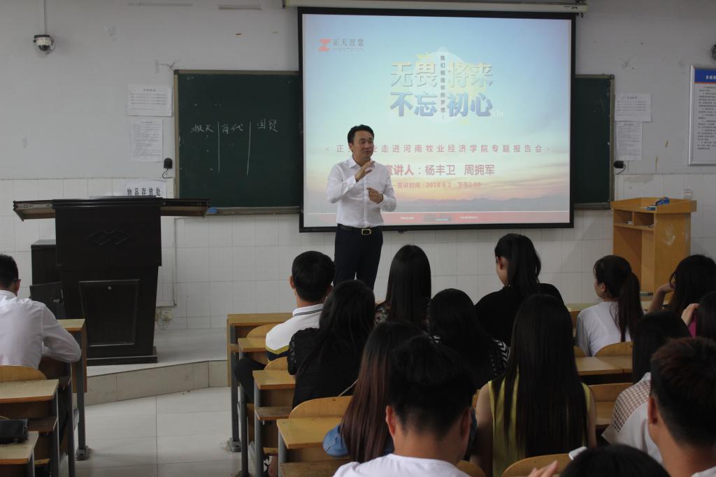 2016年6月2号下午,经济贸易学院校企合作单位郑州正天房地产经纪有限公司(正天置业)的两名高管走进校园,为经贸学院2014级学生开展了题为“无畏将来 不忘初心”的专题讲座。此次讲座为必赢官网名师讲坛活动之一,主讲人是正天置业的区域总监杨丰卫先生和后勤总监周拥军先生。
