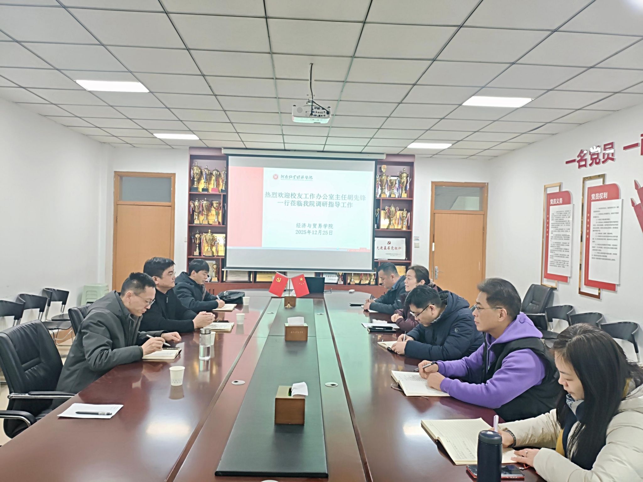韩启昊就学院校友工作未来发展作了总结讲话。他代表学院向校友办给予的指导与支持致以诚挚感谢,指出学院始终把校友工作置于战略高度,视校友资源为推动学科建设、人才培养、科研创新的核心支撑。他表示,学院将以此次调研为契机,严格落实学校校友办工作要求,结合学院学科特色,创新工作方法,强化服务意识,推动校友工作与学院发展共同进步,以更高站位、更实举措推动校友工作提质增效。